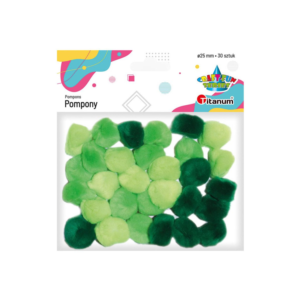 Pompony akrylowe tonacja zielona 25mm 30szt Titanum