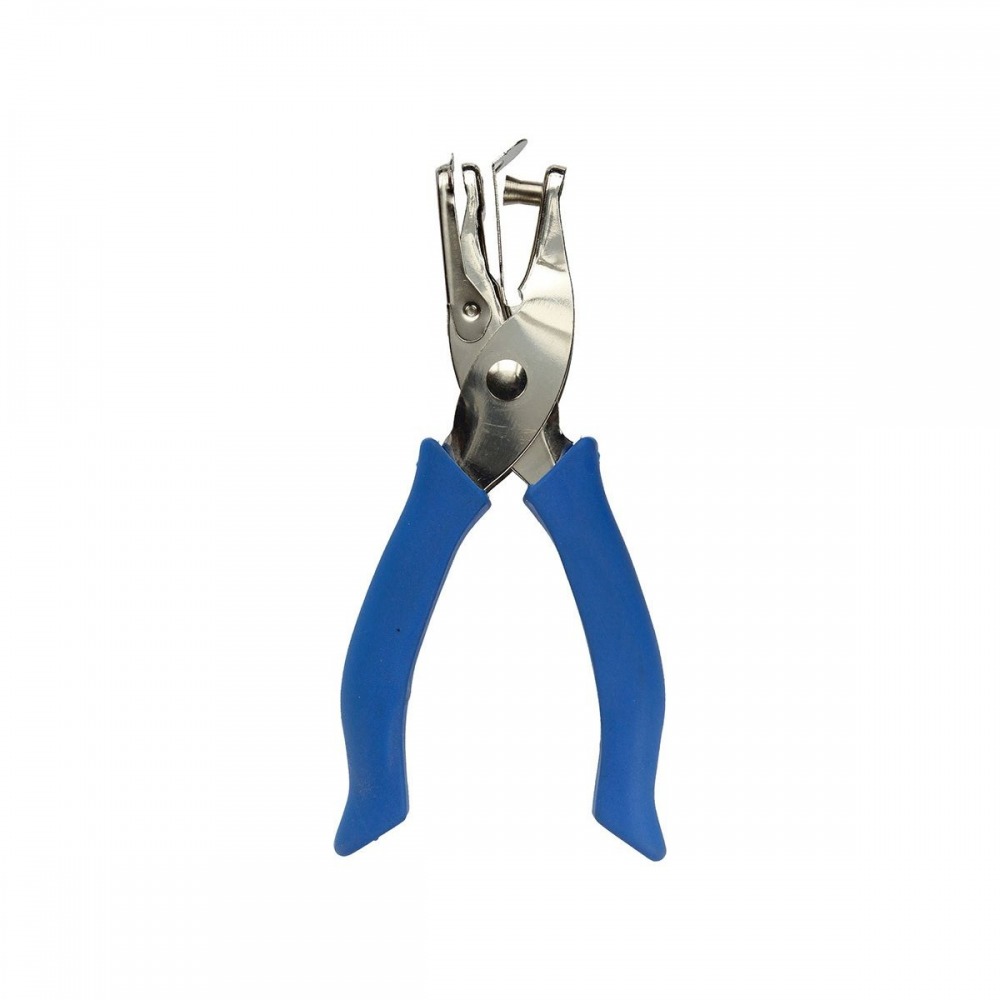 • Metal single-hole scissor punch with a rubberized handle for comfortable grip.