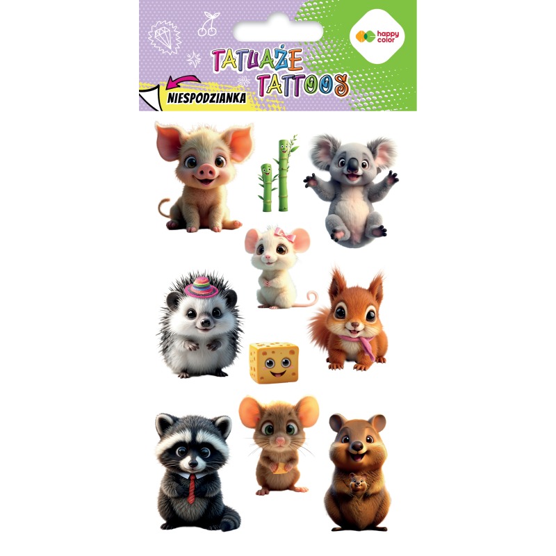 Tatuaże zmywalne Cute Animals Słodkie Zwierzątka 10x20cm Happy Color