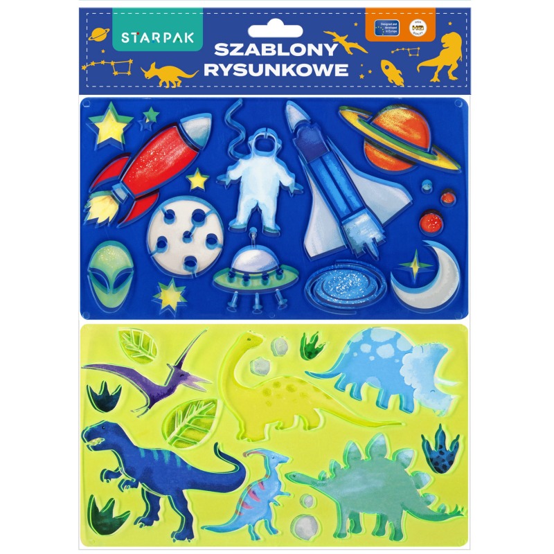 Szablon rysunkowy Dinozaury/Kosmos 225x130 2szt STARPAK 505501