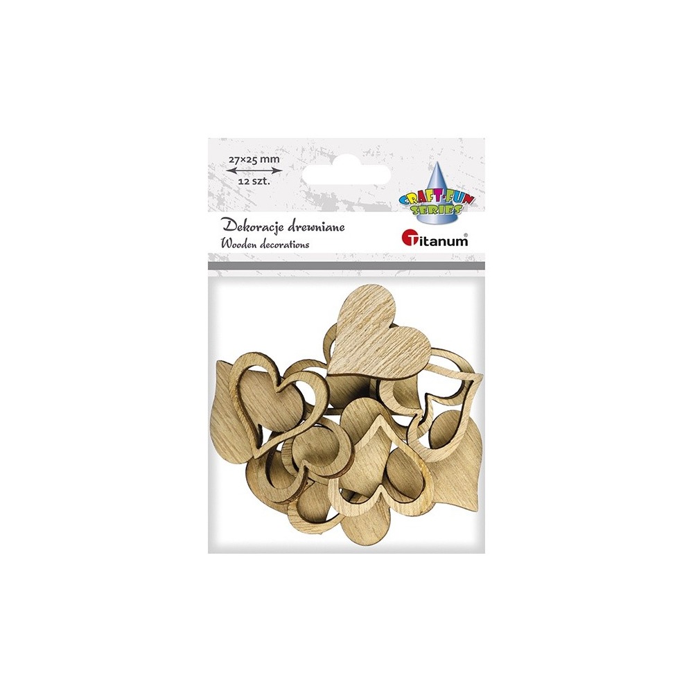 Wooden full hearts and contours 27x25mm, natural color 12pcs. Titanum