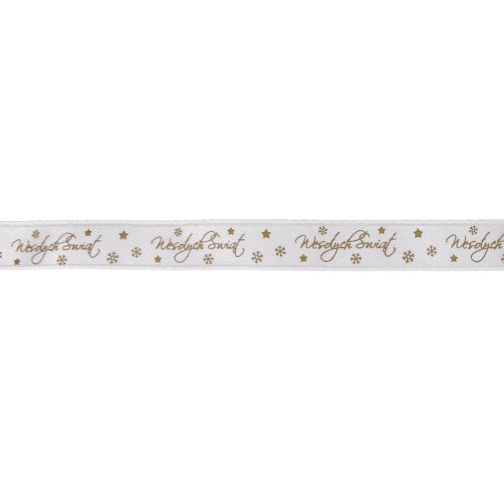 Wstążka satynowa biała Wesołych Świąt 12mm x 25 yd Titanum