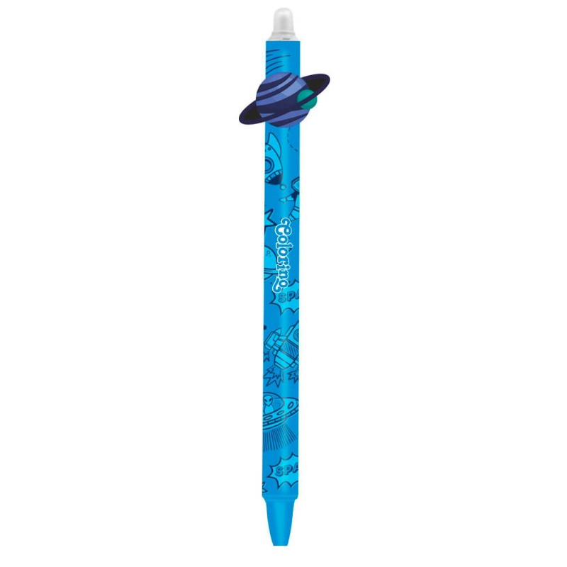 The Space Life collection includes erasable pens with colorful cosmic motifs