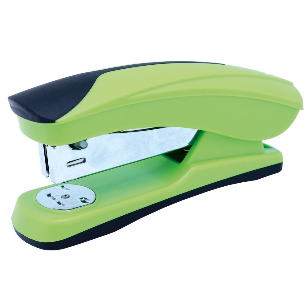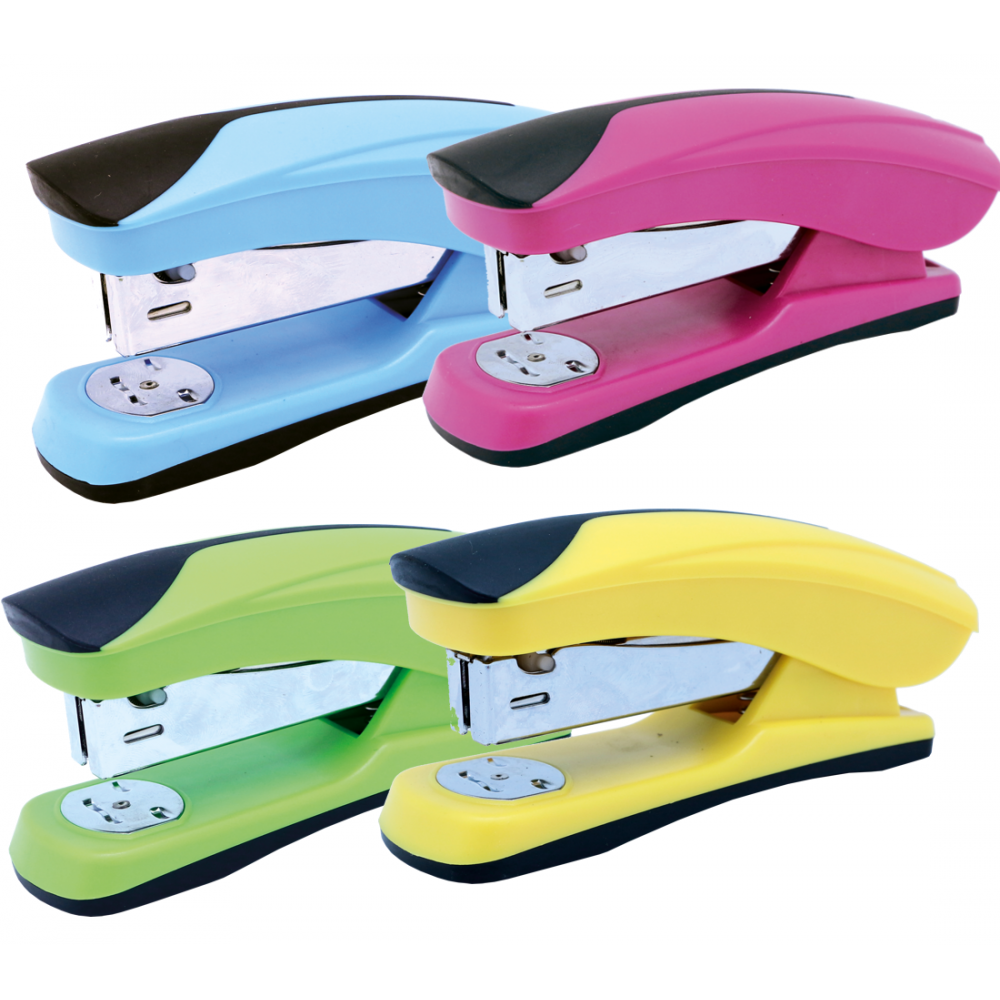 High-quality stapler from M&G that holds 100 staples in the feeder. It staples up to 20 sheets of 80g paper. The stapler is for standard 24/6 staples. Staples up to 5 cm into the sheet from its edge. Interesting, intense colors. On the upper edge of the stapler there is a black non-slip rubber, thanks to which the finger does not slip when pressing.
