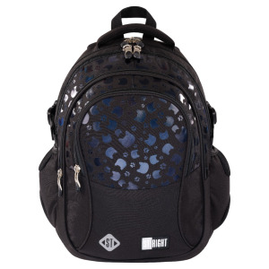 Czterokomorowy plecak szkolny, wykonany z materiałów najwyższej jakości, z dbałością o wszystkie szczegóły. Ten model posiada dwie kieszenie zewnętrzne oraz dwie dodatkowe kieszenie wewnętrzne. Dużym atutem jest wyjście słuchawkowe oraz organizer z zawieszką na klucze, który pozwoli na odpowiednią organizację wnętrza plecaka. Profilowane, ergonomiczne plecy, z dodatkowym usztywnieniem, zwiększą komfort użytkowania, podobnie jak miękkie szelki z regulacją długości.