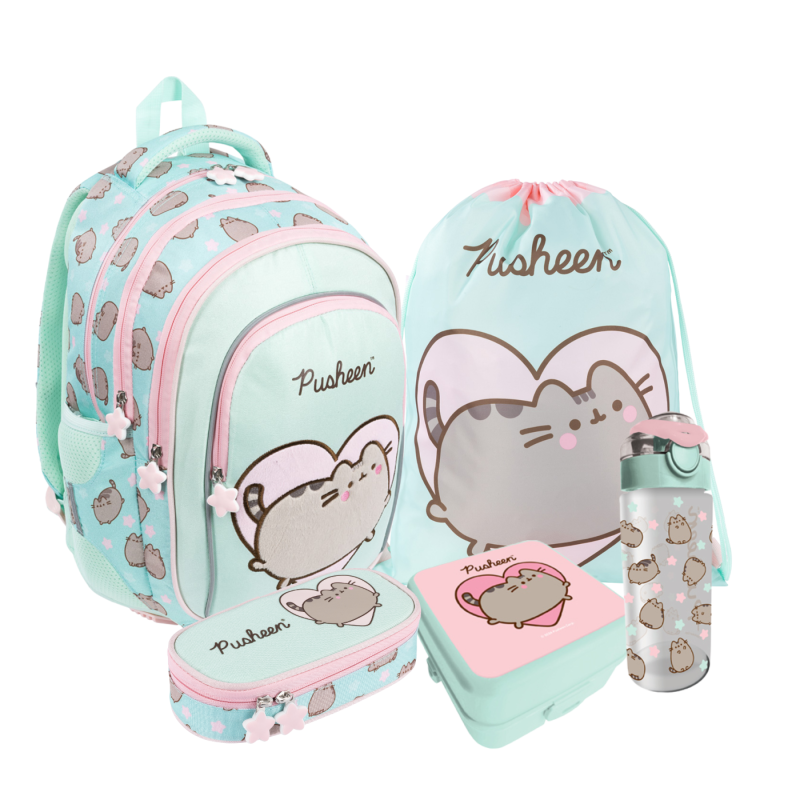 ❤️ Przedstawiamy wyjątkowy zestaw Pusheen Mint Majewski, który idealnie wpasuje się w potrzeby każdego ucznia! Nasz komplet składa się z przestronnego plecaka czterokomorowego, piórnika, praktycznego worka na obuwie oraz śniadaniówki i bidonu , zapewniając wszelkie niezbędne akcesoria w jednym!