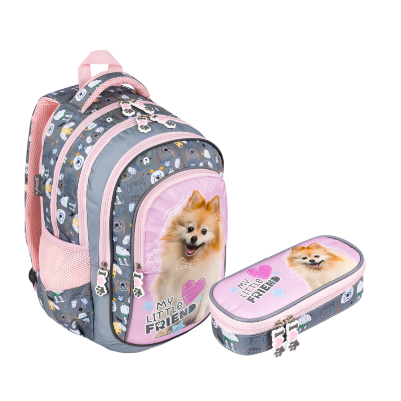 ❤️ Zestaw Plecak 4 komorowy oraz Piórnik saszetka Sweet Pomeranian z kolekcji My Little Friend firmy Majewski to idealna propozycja dla miłośników uroczych motywów i funkcjonalnych rozwiązań.