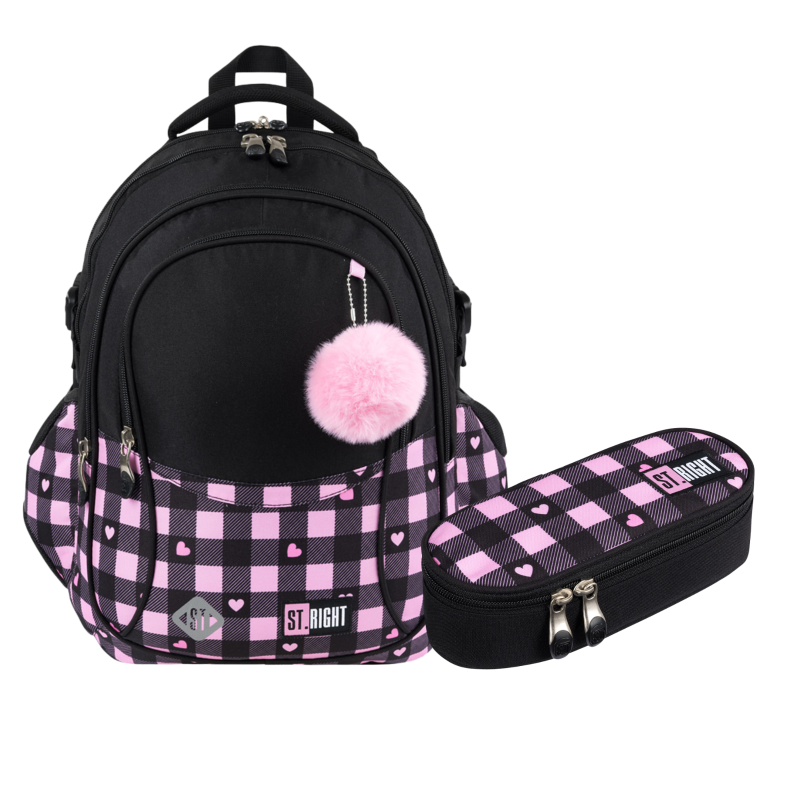 ✴️ Przedstawiamy stylowy i funkcjonalny zestaw do szkoły marki St.Right Majewski, który zaspokoi potrzeby zarówno dzieci, jak i rodziców ceniących jakość i estetykę. W skład zestawu wchodzi plecak oraz piórnik saszetka, obydwa w uroczy wzór różowej kratki Pink Checkered.
