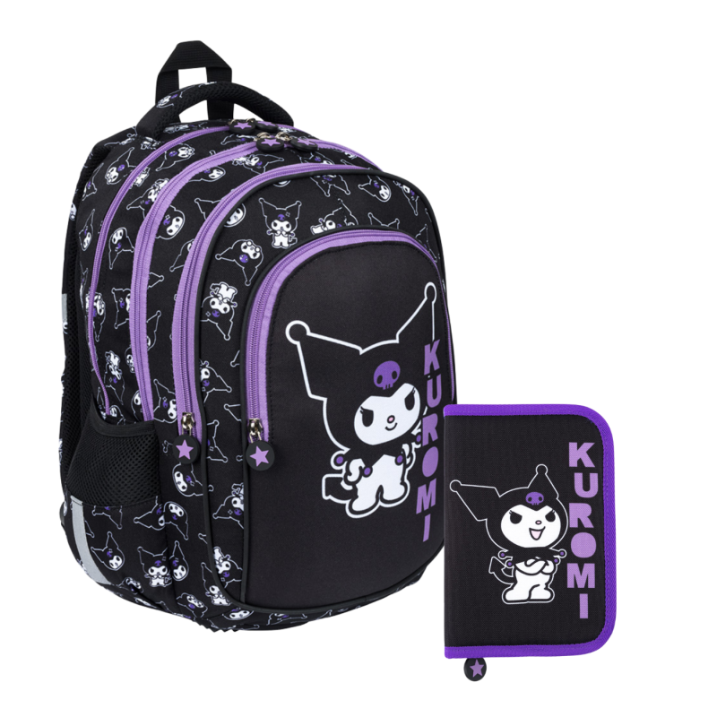 ➡️ Zestaw szkolny Kuromi Black Majewski to doskonałe rozwiązanie dla każdego ucznia pragnącego wyróżnić się w tłumie. W jego skład wchodzi plecak czterokomorowy oraz dwuklapowy piórnik, oba ozdobione modnym motywem z serii Kuromi.
