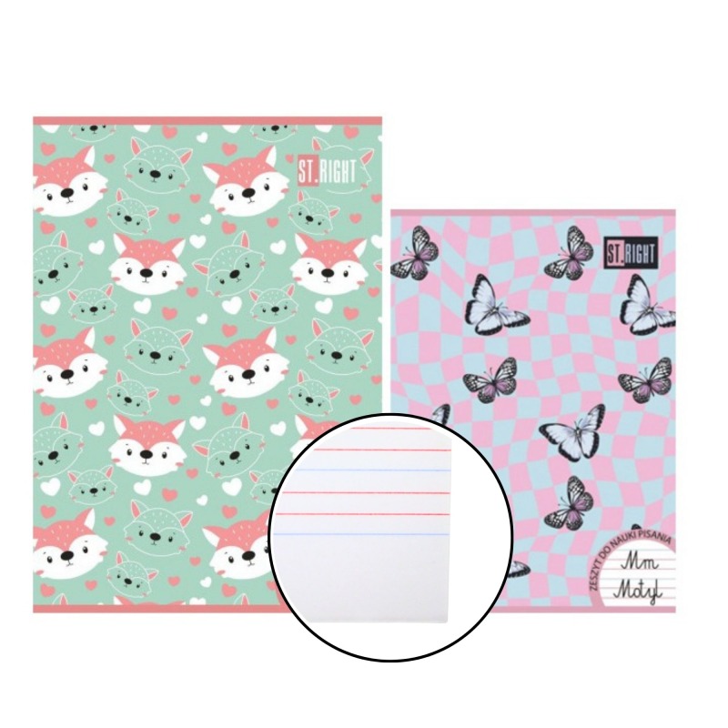 Zeszyt do nauki pisania A4 32k linia podwójna dwukolorowa laminowany Lovely Foxy Liski/Chess Butterflies Motyle mix Unipap