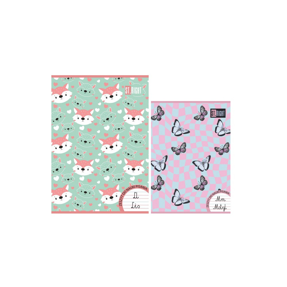 Zeszyt do nauki pisania A4 32k linia podwójna dwukolorowa laminowany Lovely Foxy Liski/Chess Butterflies Motyle mix Unipap