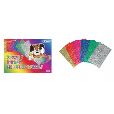 ✅ Zeszyt - bibuła (papier) metalizowana marszczona w 6 kolorach. Standardowy zeszyt a w nim oryginalna zawartość - bibuła metalizowana! Świetny i efektownie wyglądający dodatek do prac kreatywnych.