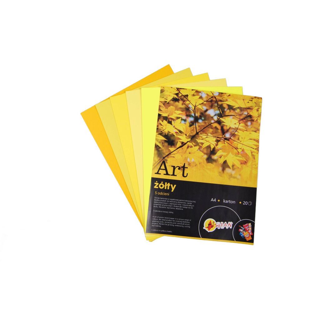 Blok kolorowy ART żółty Shan A4 20 ark to doskonały wybór dla artystów i entuzjastów rękodzieła. Ten wysokiej jakości blok na sztywnej tekturze zawiera 20 arkuszy papieru w uniwersalnym formacie A4. Żółta okładka dodaje eleganckiego wyglądu, a kolorowe strony z różnorodnymi odcieniami stanowią idealną bazę do tworzenia inspirujących projektów. Niezawodny i praktyczny, ten blok zapewni Ci niezastąpione narzędzie do wyrażania swojej kreatywności na papierze. Format A4 Ilość arkuszy - 20 Papier barwiony w masie ( po przecięciu środek też jest w kolorze) Blok zawiera 5 odcieni danego koloru. Gramatura - w bloku znajdują się różne gramatury od 160g do 220g ( jeden odcień to jedna gramatura)