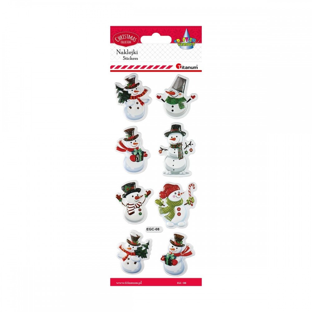 Naklejki świąteczne wypukłe 8szt Bałwanki Titanum