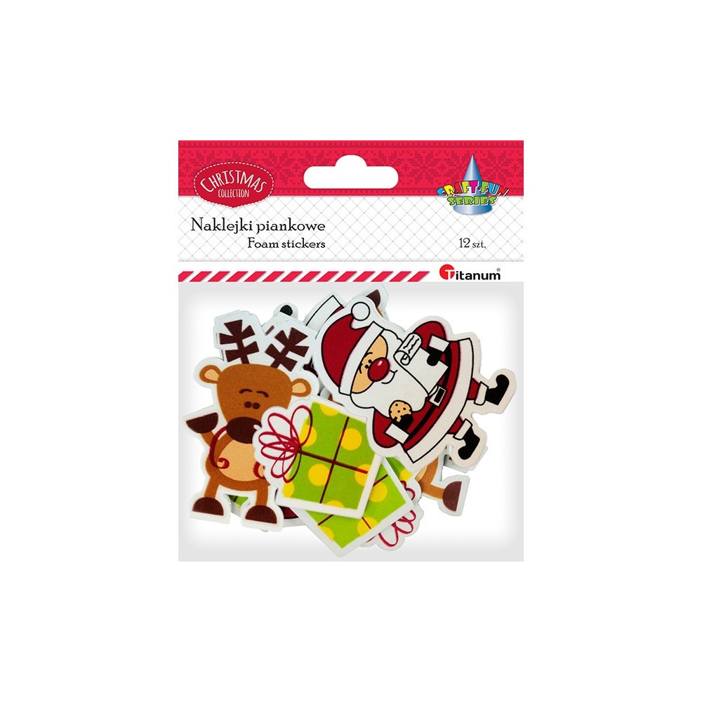 Naklejki piankowe 12 szt prezent renifer Mikołaj