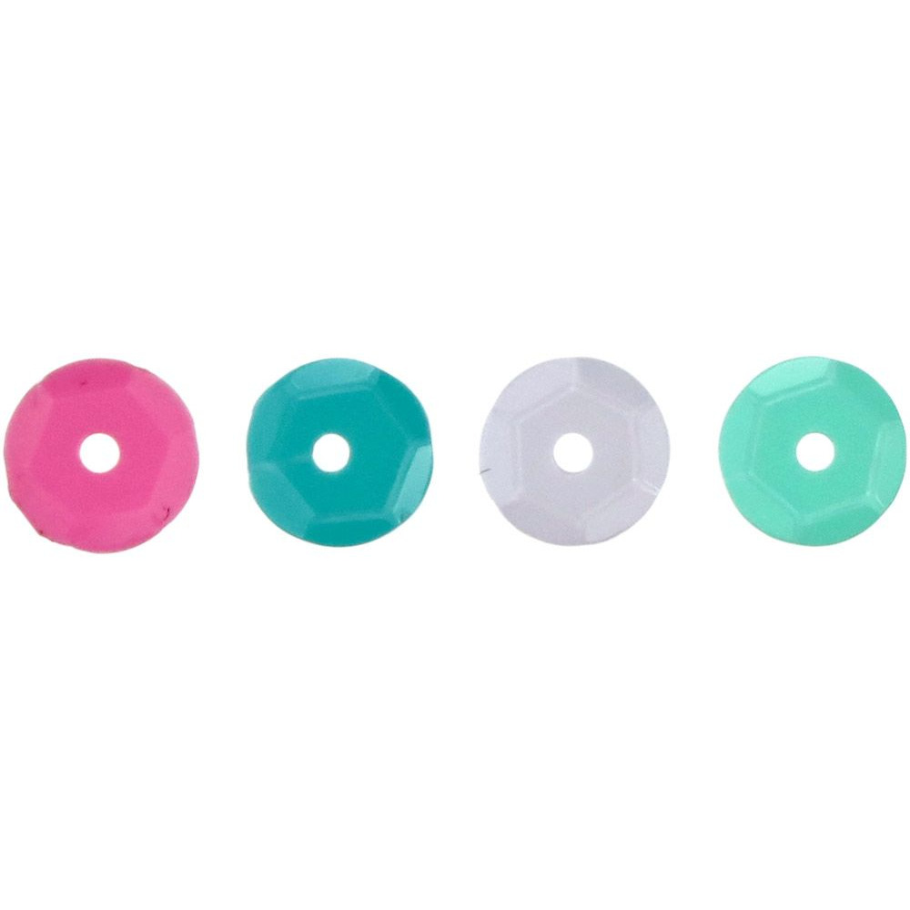 Cekiny okrągłe, średnica: 6 mm, zestaw 4 kolorów x2 2, kolory: biały, miętowy, ciemno miętowy, różowy. 8x3g.