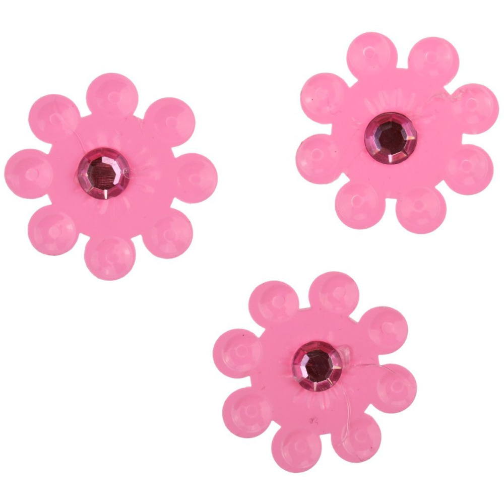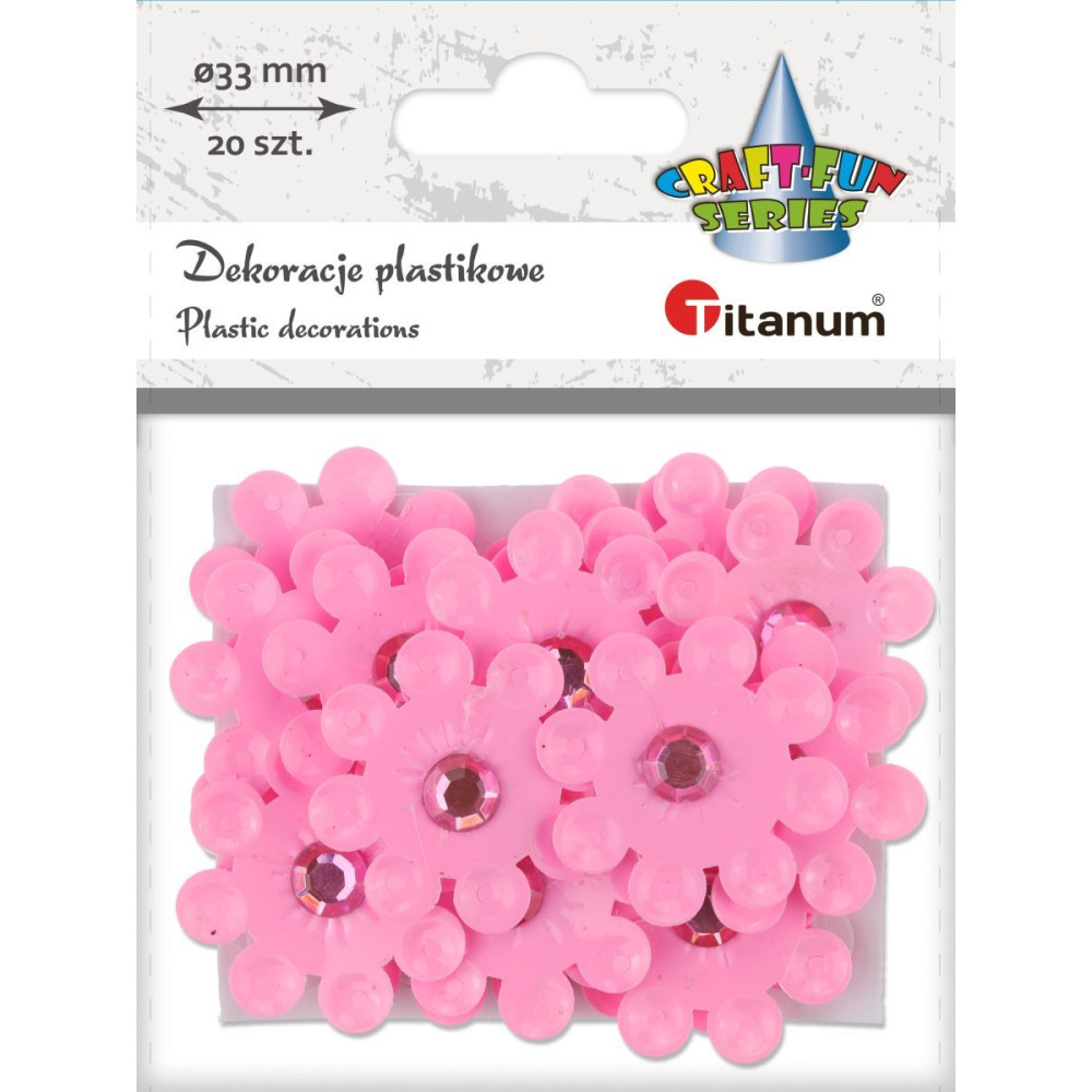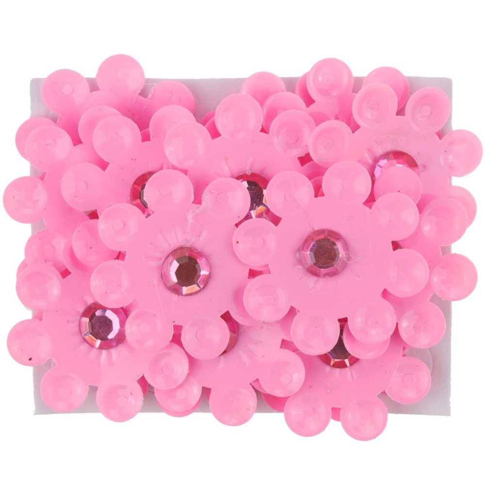 Dekoracje samoprzylepne plastikowe 3D, wzór: kwiaty, średnica 33 mm, różowe z kryształkiem, 20 sztuk.
