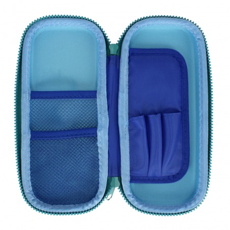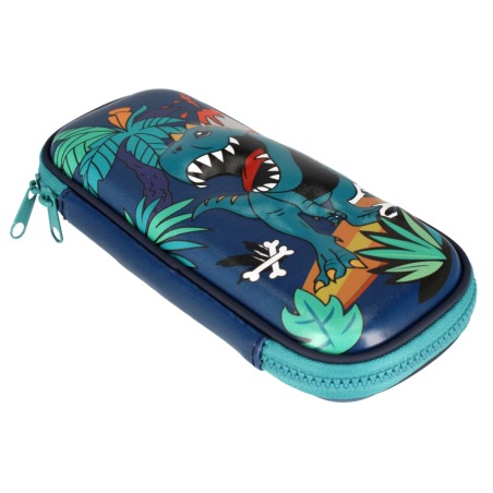 ➡️ Piórnik 3D Dino z 1 klapką i elastyczną kieszonką z siateczki na przybory szkolne zapinany na mocny zamek.