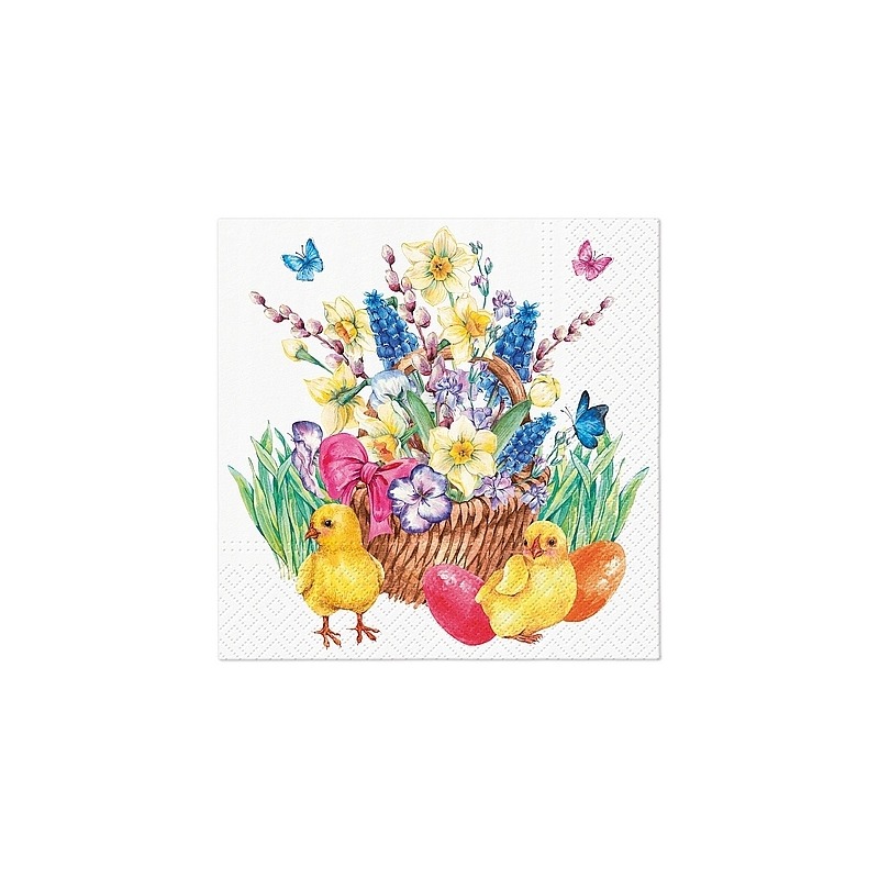 Serwetki koszyk z kwiatami i kurczaczki Wielkanoc 33x33cm TeteaTete