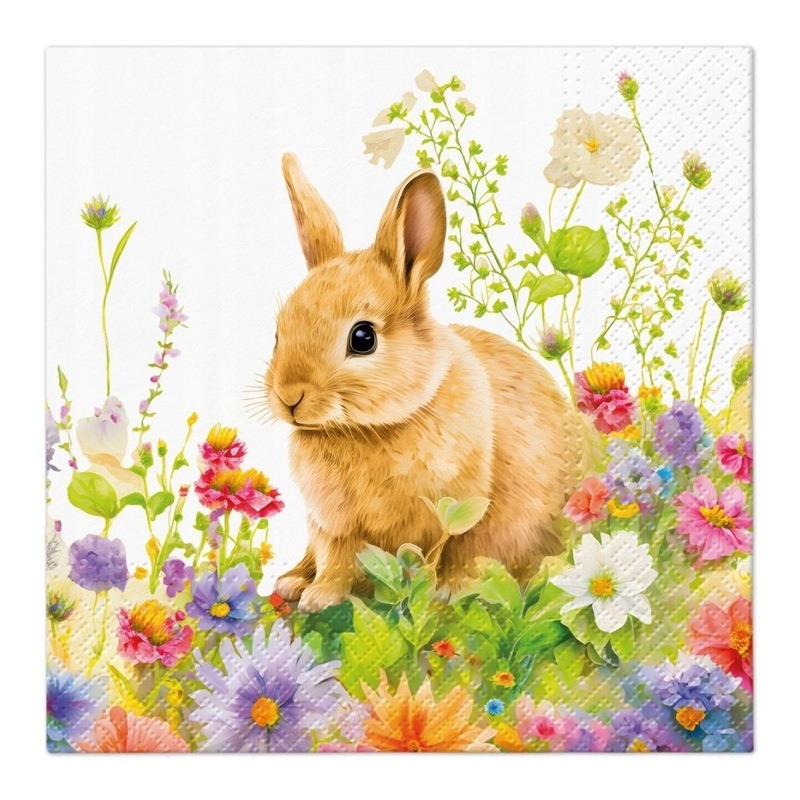 Serwetki Zajączek w kwiatach Wielkanoc 33x33cm Paw Decor Collection