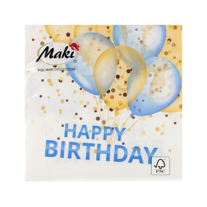 Serwetki Happy Birthday Balony niebiesko-złote 25x25 cm Pol-mak
