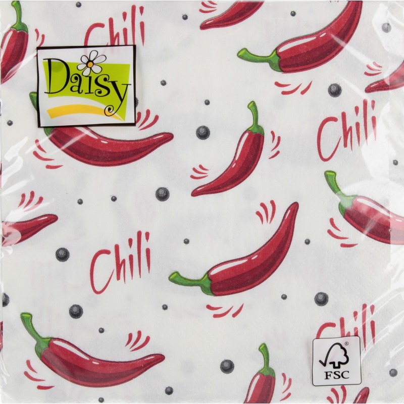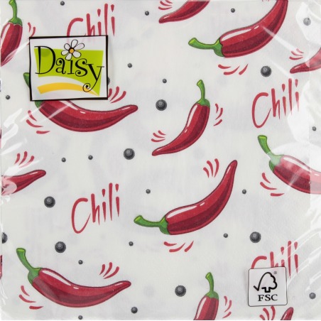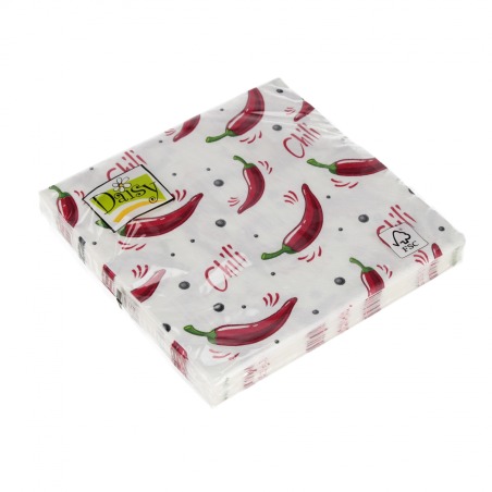 ⭐ Ozdobne serwetki z motywem papryczek chilli białym tle.