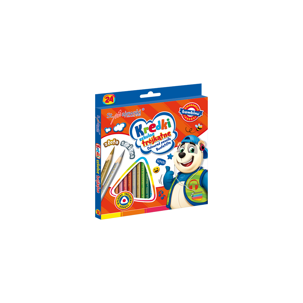 Bogata gama kolorów, w tym kredka złota i srebrna.