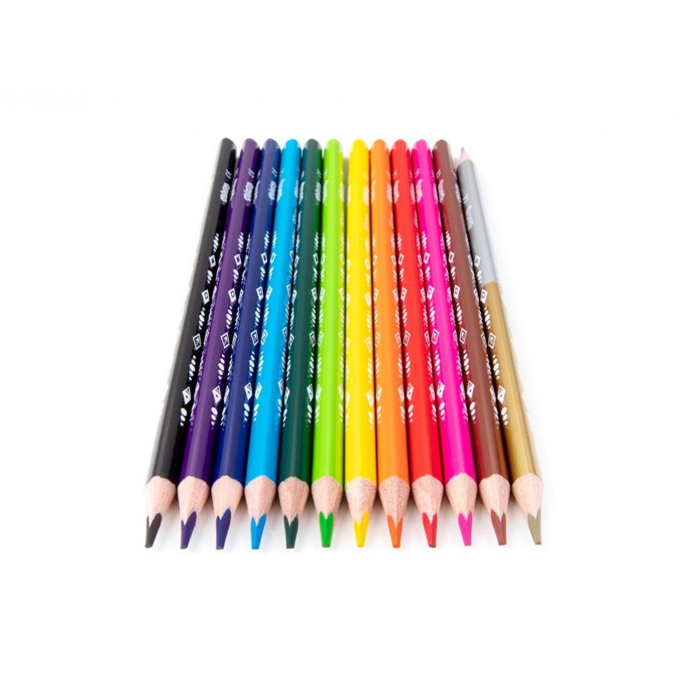 11 kredek jednokolorowych + 1 kredka dwustronna złota/srebrna