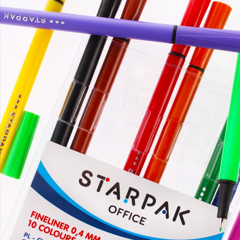 ✅ Smukłe, tradycyjne cienkopisy STARPAK w 6 kolorach o grubości linii pisania 0,4mm.