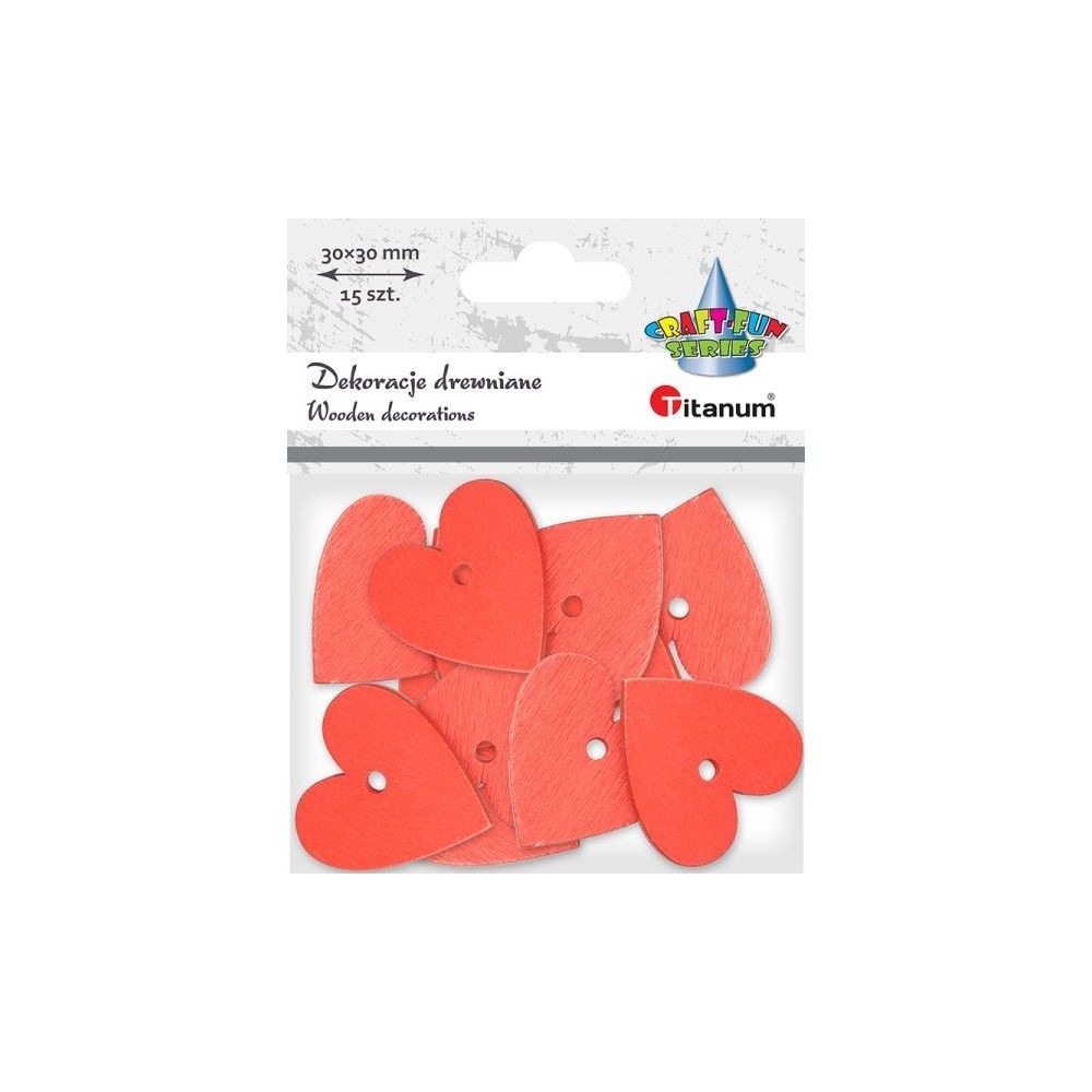 Drewniane serca 30x30mm czerwone 15szt. Titanum