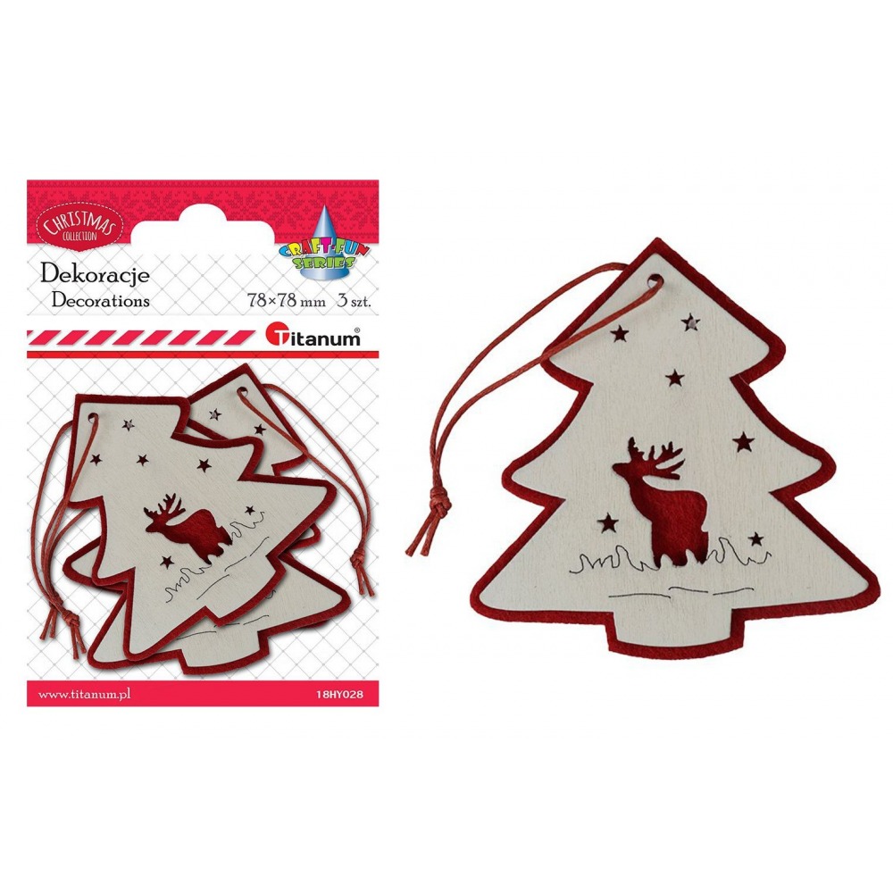 Zawieszka filcowo-drewniana choinka 78x78mm 3 szt Titanum