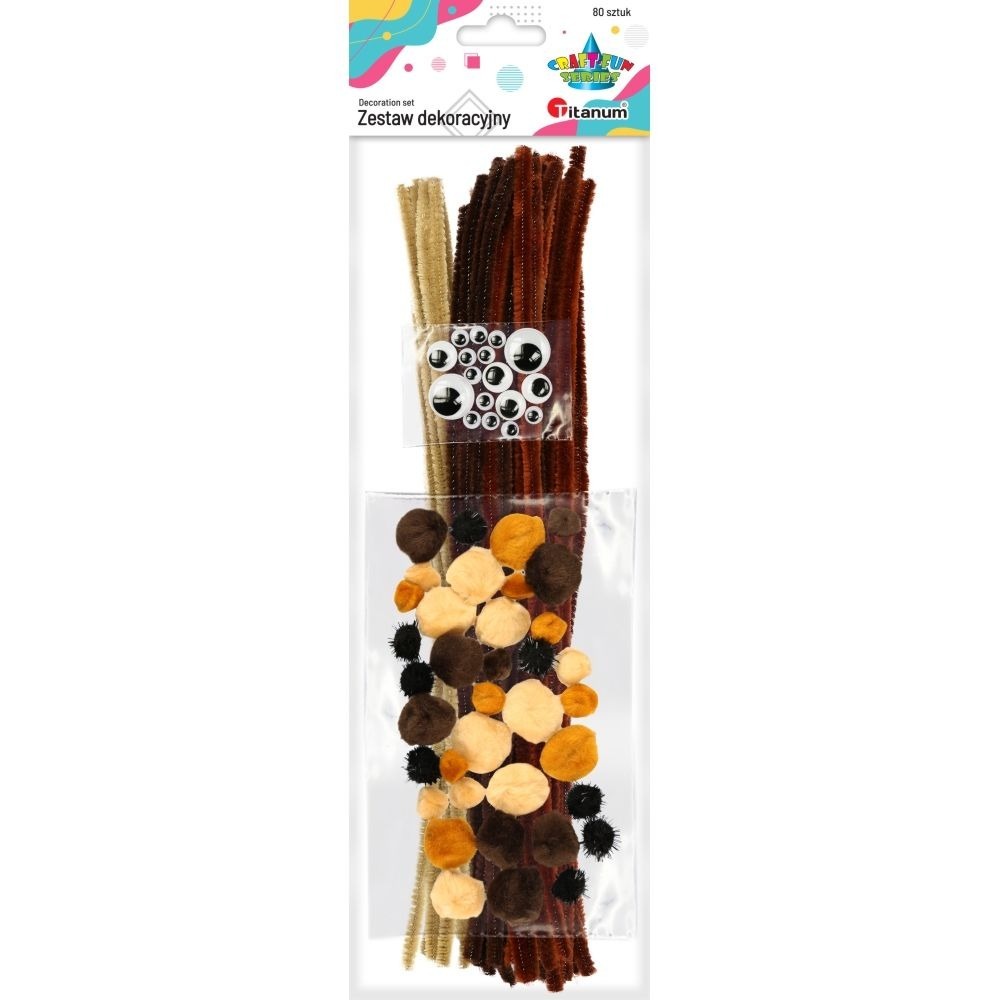 Zestaw dekoracyjny druciki pompony oczy tonacja brązowa Titanum