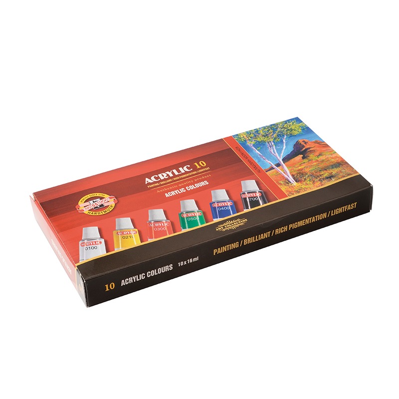 Farby akrylowe służą do wykonywania trwałych prac, które po wyschnięciu nie odbarwiają się i nie rozmazują. Nadają się do malowania na wszelkich powierzchniach niechłonących wody. Rozcieńczane są za pomocą wody. Poszczególne kolory można ze sobą mieszać, uzyskując w ten sposób bardzo szeroką gamę kolorystyczną. Farby wykonane są z bardzo dobrych jakościowo składników, dzięki czemu kolory zachowują intensywność, nawet po upływie długiego czasu.