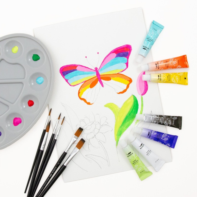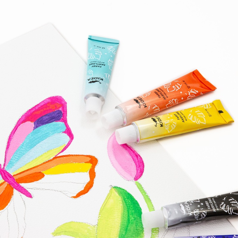 ⭐ Farby akrylowe Kidea to zestaw 12 tubek o pojemności 12 ml w trwałych, nasyconych kolorach. ⭐