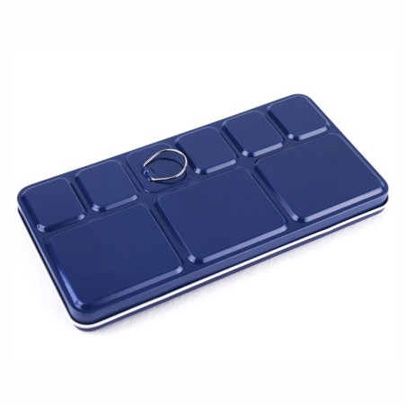 ⭐ Zestaw spakowany jest w metalową kasetkę w kolorze indigo, zawierającą dodatkowe paletkę do mieszania farb oraz uchwyt z tyłu kasetki na kciuk do trzymania. Dodatkowo do kompletu dołączony jest wzornik kolorów do samodzielnego wykonania.