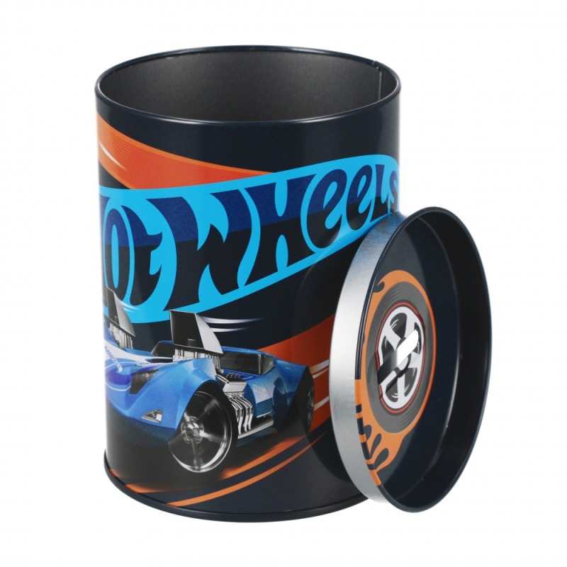 ✅ Pojemna skarbonka z lakierowanego metalu z otwieranym wieczkiem.