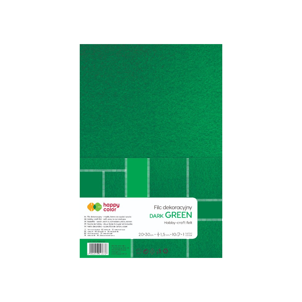Filc dekoracyjny ciemnozielony 10ark 1,5mm 20x30cm Happy Color