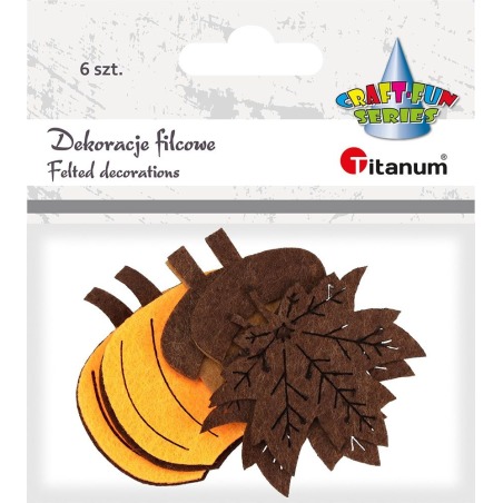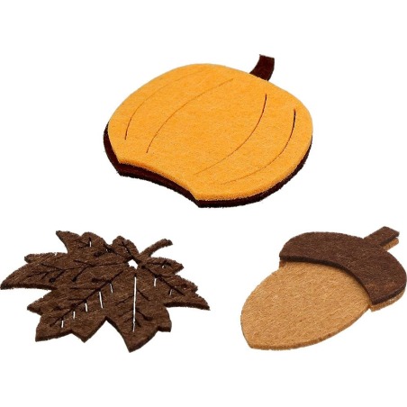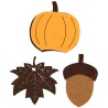 ✴️ wzór: dynie 3D - 50 x 51 mm, pomarańczowo-brązowe, żołędzie 3D - 35 x 52 mm, pomarańczowo-brązowe, liście klonu - 50 x 49 mm, brązowe.