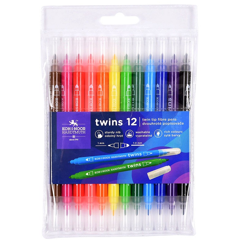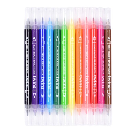 ✅ Flamastry posiadają dwie końcówki. Końcówka gruba ułatwia szybkie wypełnianie kolorem dużych powierzchni.