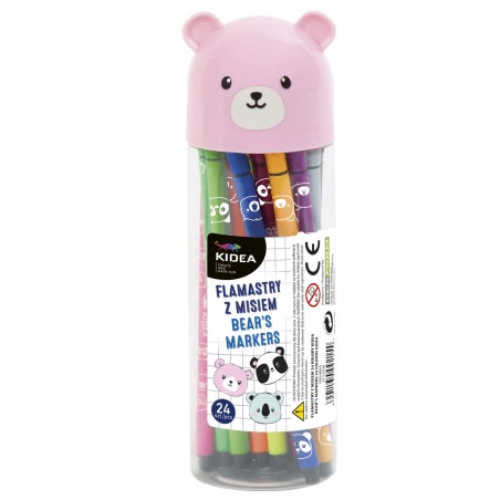 - Flamastry w uroczym pojemniczku z misiem to praktyczny zestaw, który z pewnością przyda się w szkole.