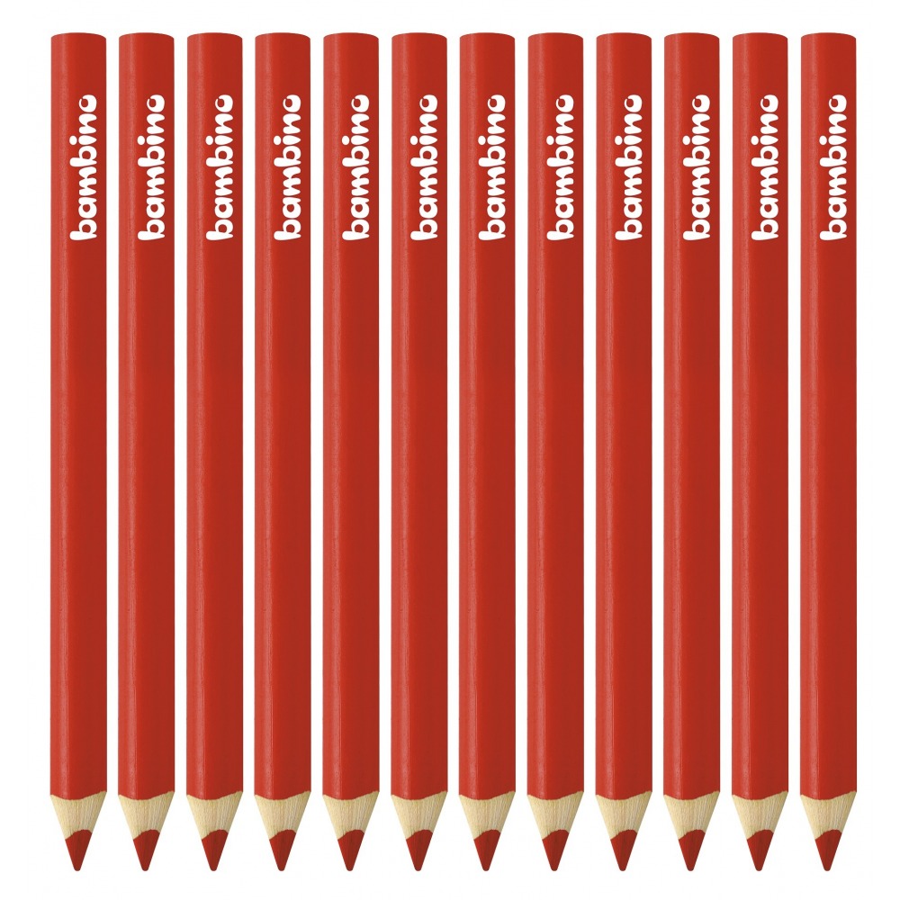 Kredki w drewnianej oprawie grube trójkątne 12 szt Bambino BOX czerwone