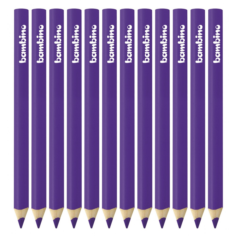Kredki w drewnianej oprawie grube trójkątne 12 szt Bambino BOX fioletowe