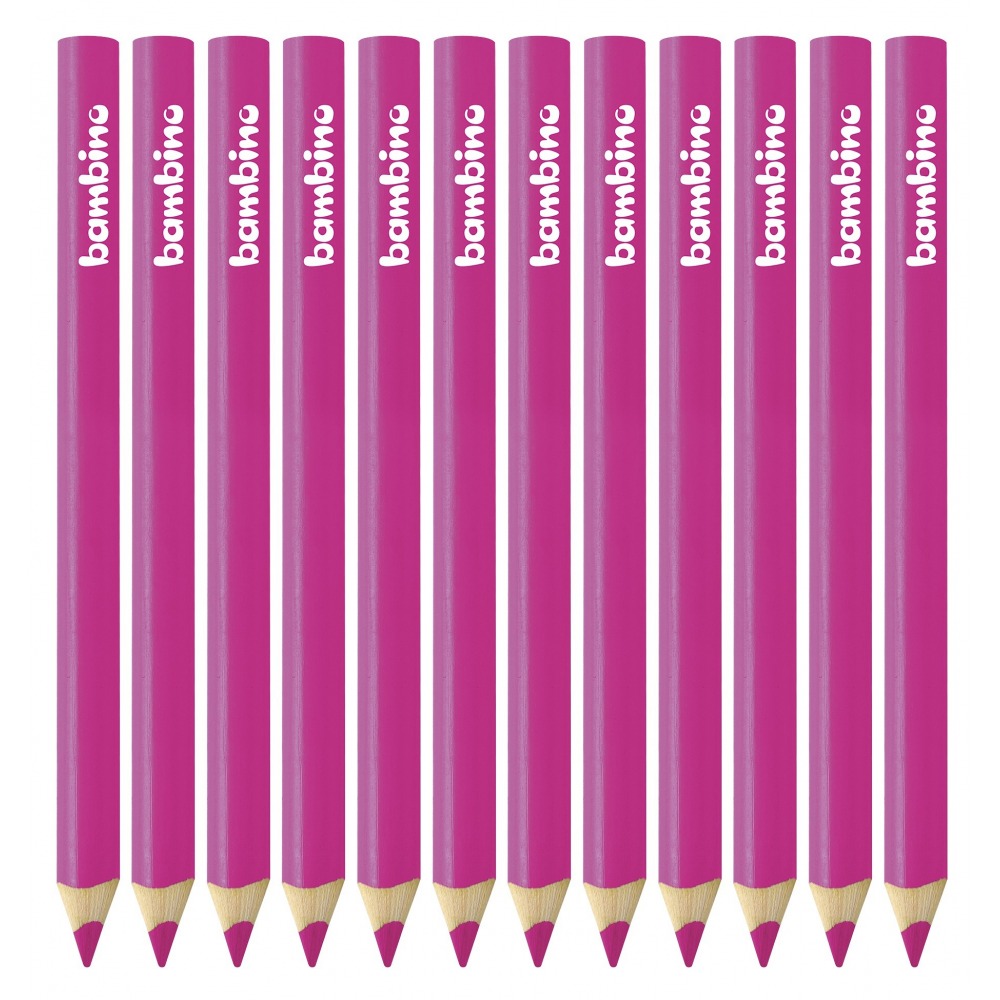 Kredki w drewnianej oprawie grube trójkątne 12 szt Bambino BOX różowe