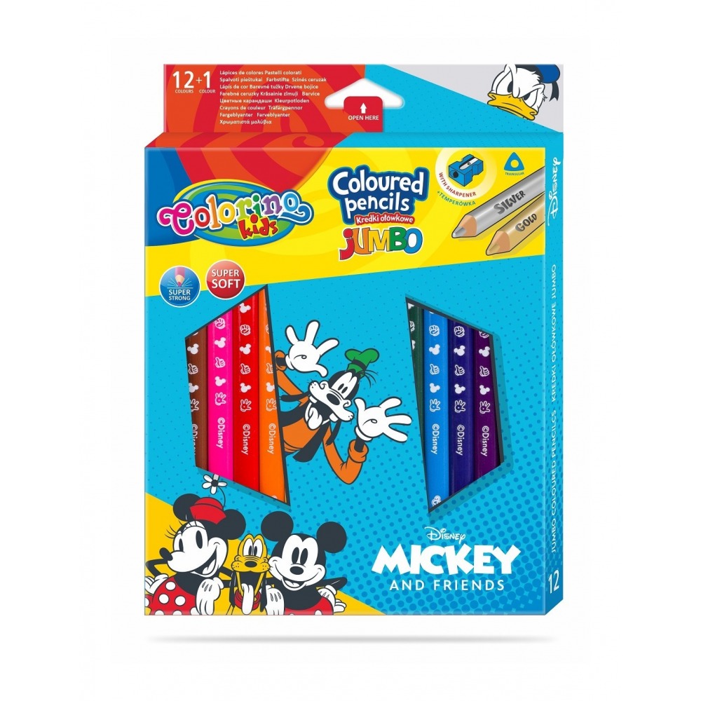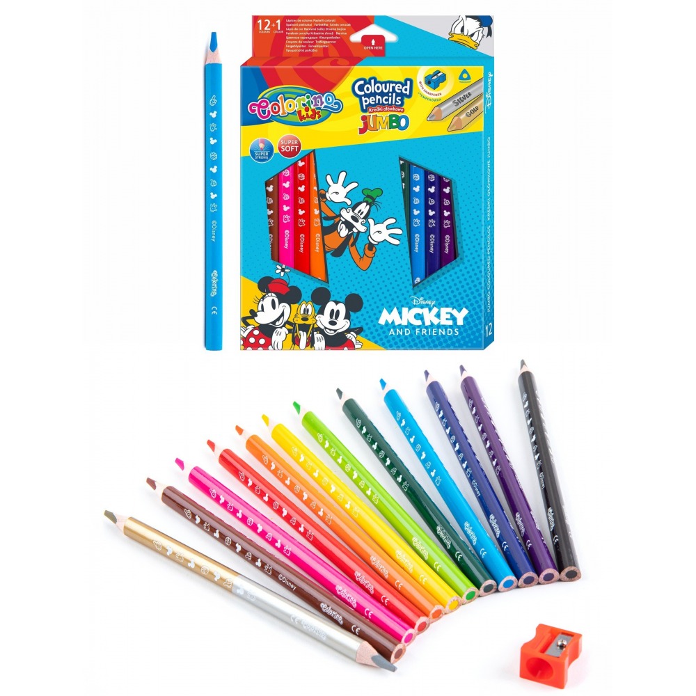 Kredki ołówkowe Jumbo Colorino Mickey Mouse 13 kolorów w zestawie z temperówką.