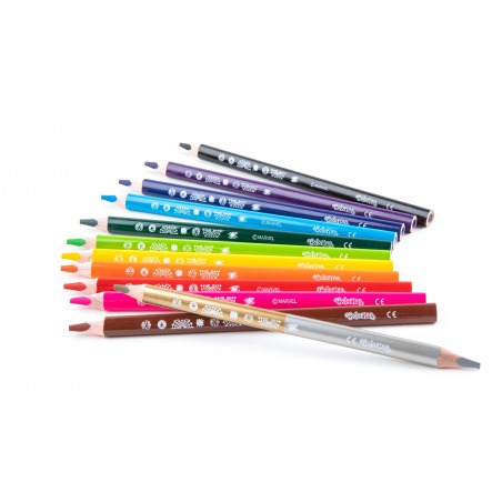 Seria Colorino Disney to produkty, które powstały w odpowiedzi na Wasze potrzeby. Udowadniamy, że w świecie doskonałej jakości i dopracowanych detali mogą się pojawić nawet najbardziej znani bohaterowie. Wystarczy wybrać ulubioną postać i skompletować z nią wszelkie niezbędne akcesoria plastyczne: kredki ołówkowe trójkątne w zestawie 13 kredek z temperówką, kredki dwustronne trójkątne zestaw 24 kolorów z temperówką, kredki Jumbo w opakowaniu 13 kolorów, w tym złota i srebrna, farby plakatowe, plastelina, flamastry, markery dwustronne, farby tempera w tubach, wykręcane żelowe kredki w sztyfcie, pastele olejne trójkątne, flamastry metaliczne oraz magnesy na lodówkę. Wśród bohaterów Disney spotkacie w Colorino: myszkę Mickey, myszkę Minnie, Annę i Elsę z Frozen II oraz wszechmocne postaci Star Wars. Dla superbohaterów mamy przygotowane tematycznie serie stworzone we współpracy Colorino i Marvel: Avengers oraz Spiderman.