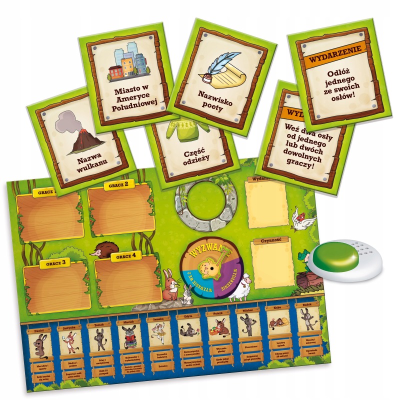 ✴️ Czy potrafisz zachować zimną krew pod presją w tej wciągającej grze? W każdej rundzie losujesz kartę z jedną z kategorii. Musisz szybko powiedzieć słowo, które zaczyna się na literę wskazaną na karcie, a następnie przekazać osła kolejnemu graczowi, zanim skończy się czas na sekundomierzu! Osoba, która zostanie z osłem w ręku na końcu rundy, zbliża się do przegranej.