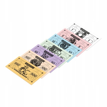 ⭐ Gracze wybierają pionki i pobierają banknoty o nominałach 500, 100, 50, 20, 10, 5 i 1. Rozgrywkę rozpoczyna osoba, która wyrzuci najwięcej oczek na kostce. Uważajcie! Za wejście na czyjeś pole należy słono zapłacić. Wygrywa gracz, który zdobędzie przewagę na planszy i doprowadzi pozostałych uczestników do bankructwa.