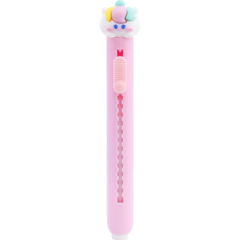 Gumka do ołówka Slide Wysuwana gumka z uroczym kotkiem na górze Możliwość regulacji długości gumki za pomocą suwaka z blokadą Wymiary: 100 x 10 x 10 mm Nie zawiera ftalanów i lateksu.