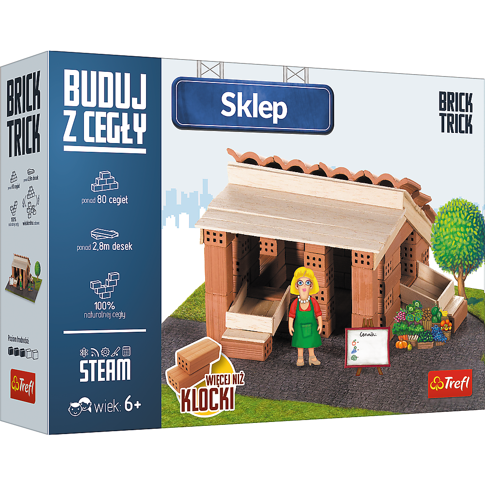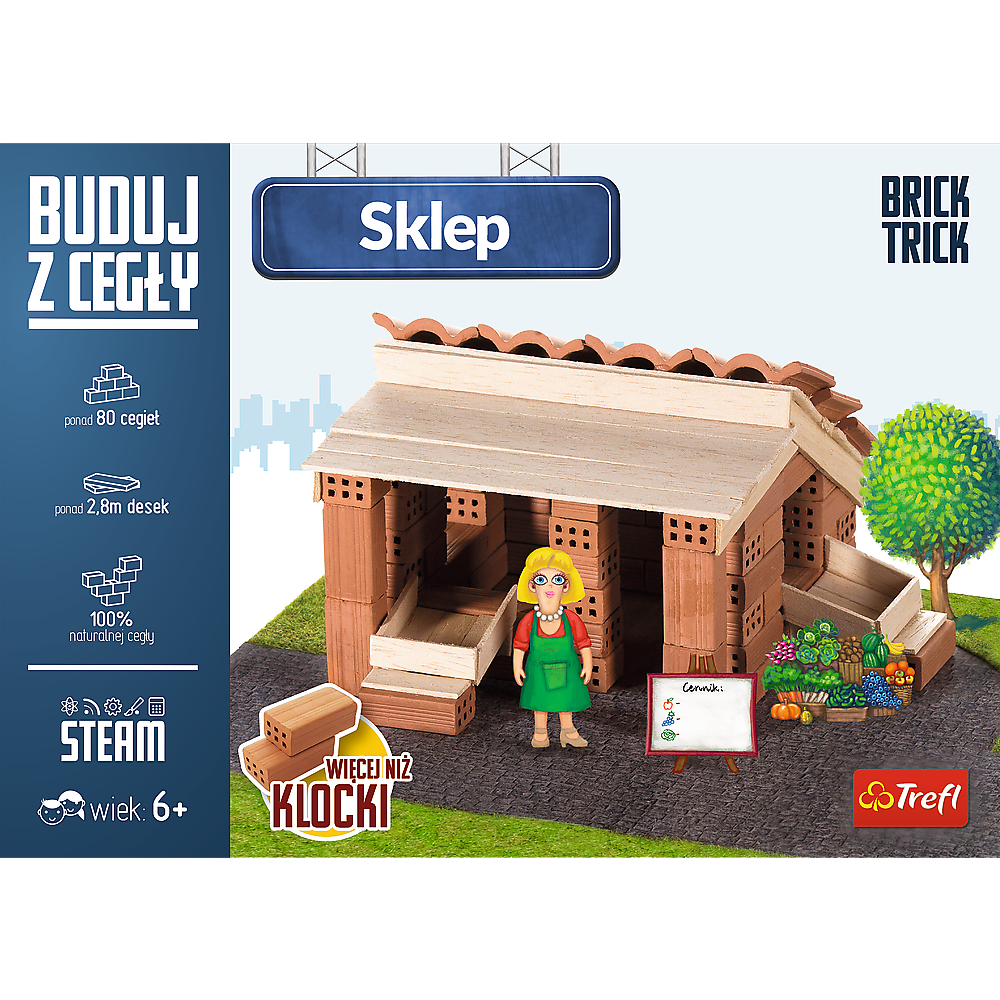Wybuduj osiedlowy Sklep, wykorzystując prawdziwe cegiełki, drewno oraz naturalne materiały dekoracyjne. Skorzystaj z dołączonych planów budowy lub użyj własnej wyobraźni do stworzenia wspaniałych budowli. Baw się dołączonymi pionkami prosto z miejskiego świata.