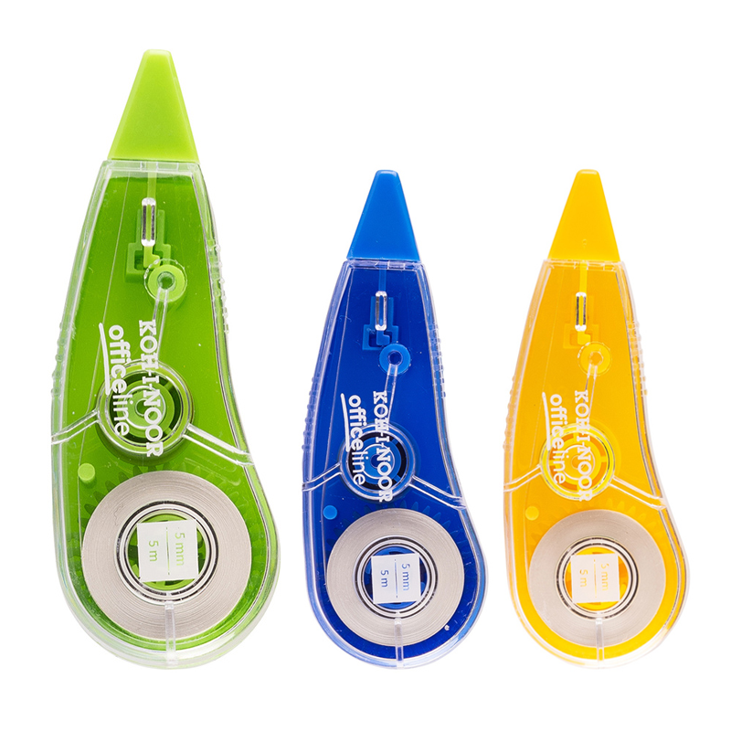 Korektor w taśmie umożliwiający natychmiastowe korygowanie błędów. Poręczny i łatwy w użyciu. Aplikator wyposażony jest w osłonkę zabezpieczającą taśmę. Dostępny w trzech kolorach: żółtym, zielonym oraz niebieskim.